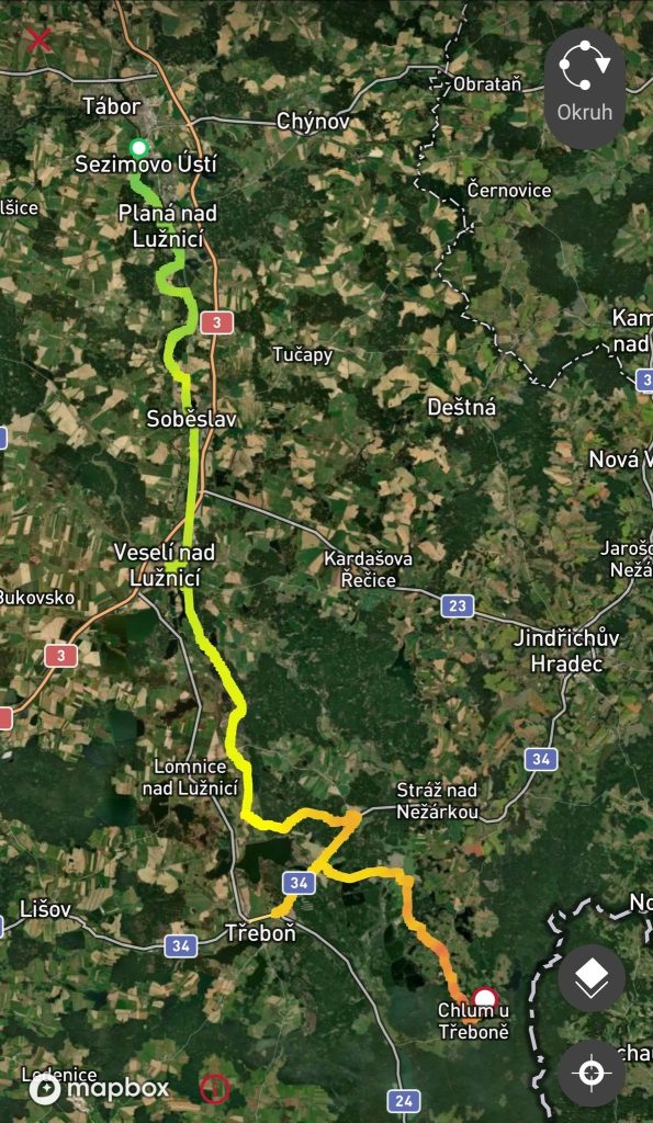 Trasa: Tábor, Roudná, Veselí n. Luž., Lužnice, Chlum u Třeboně
