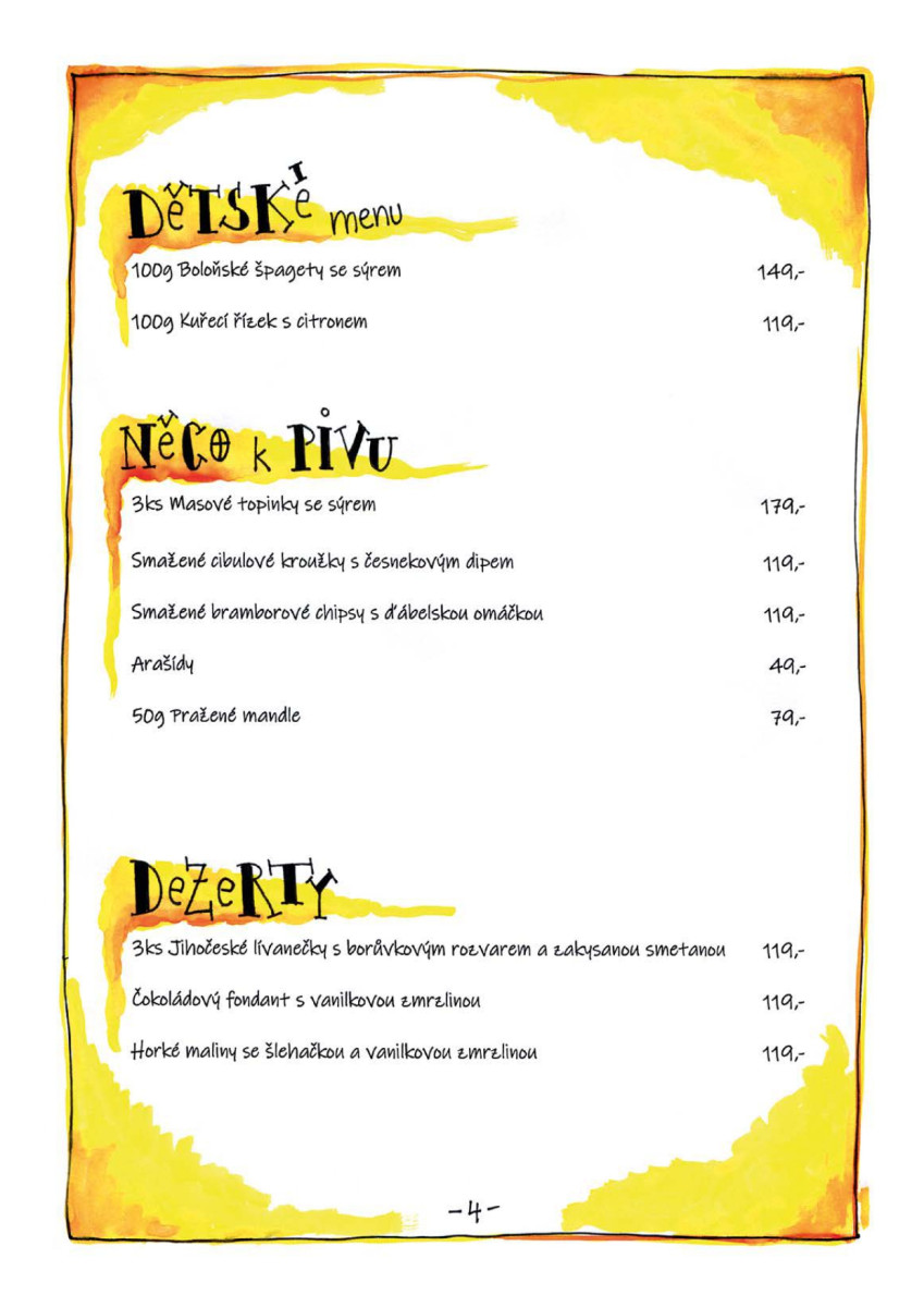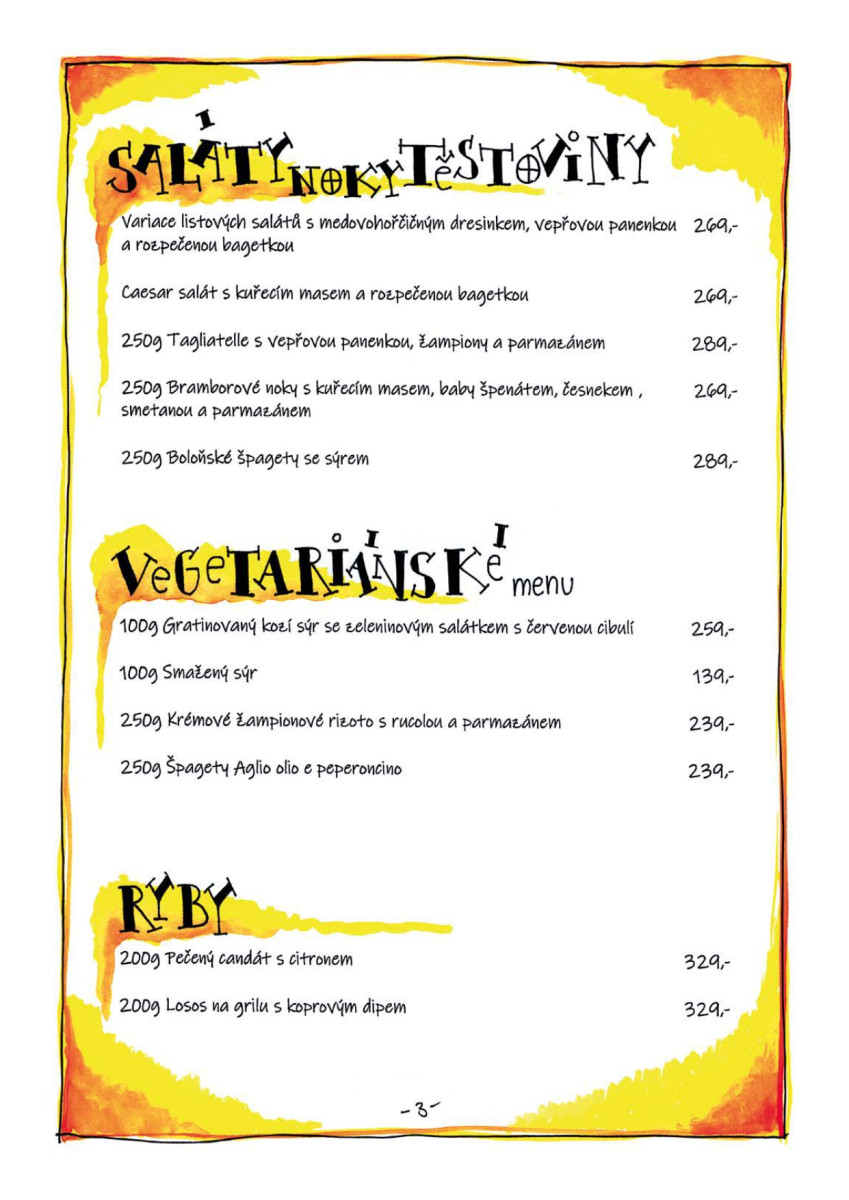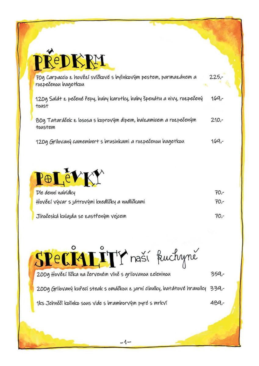 Jídelní lístek: