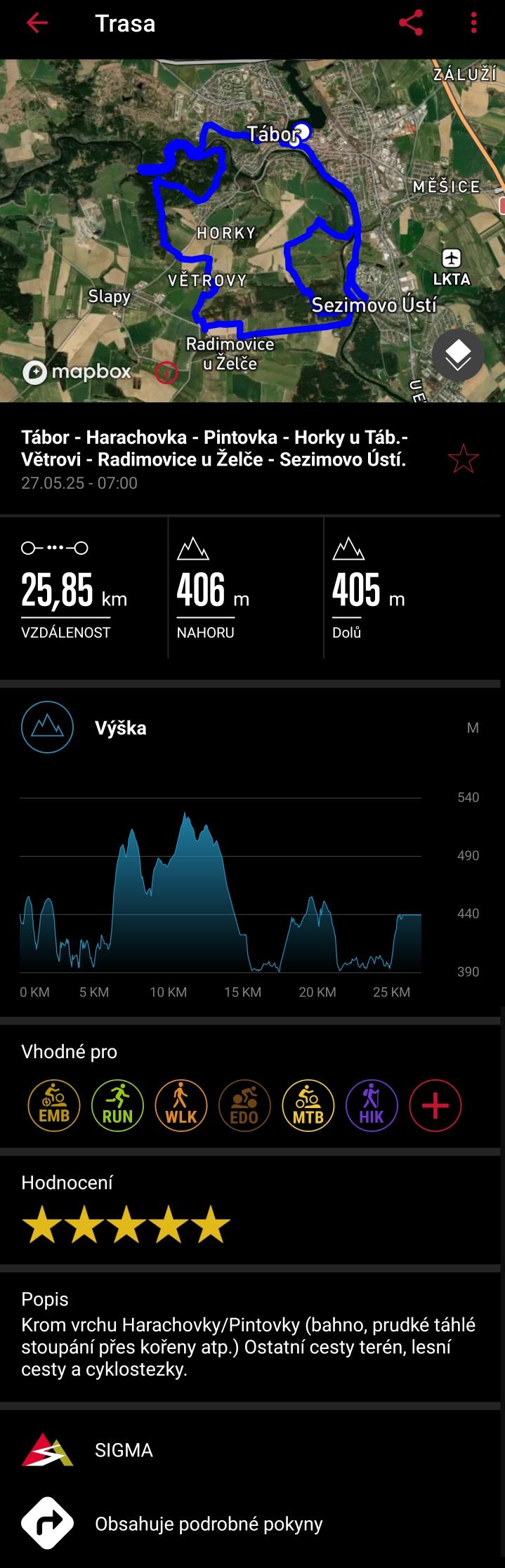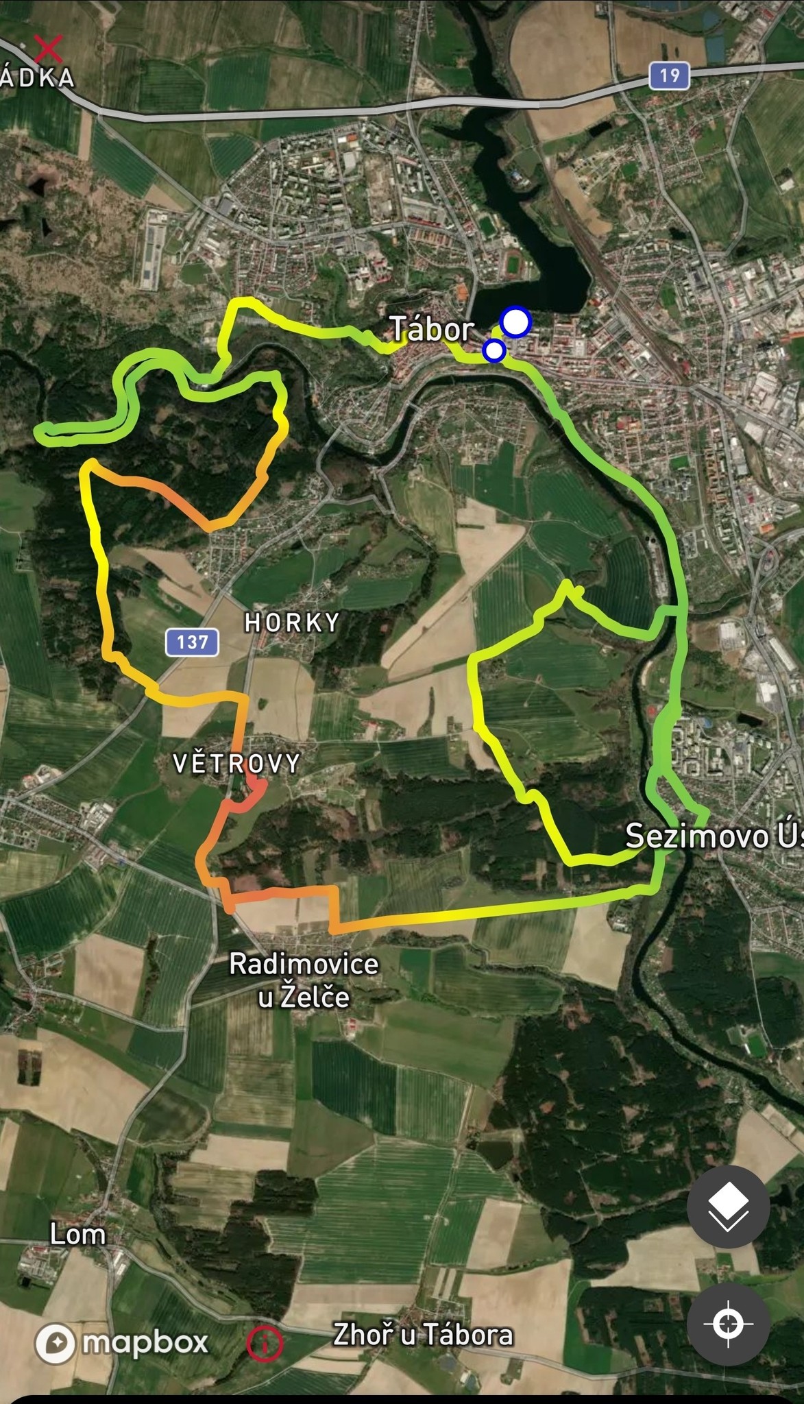 Okruh: Tábor – Harachovka – Pintovka – Horky u Tábora – Větrovi – Radimovice u Želče – Sezimovo Ústí – Tábor